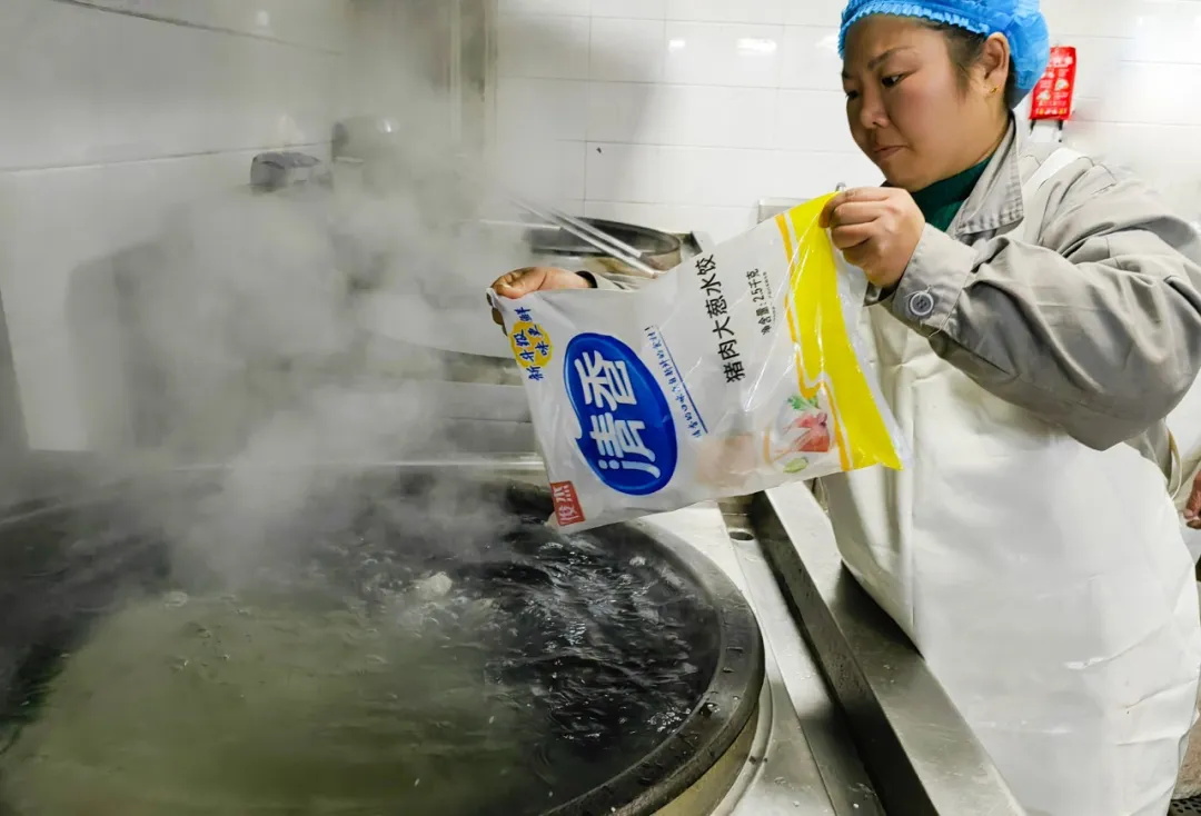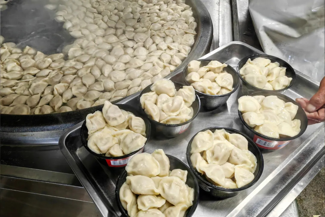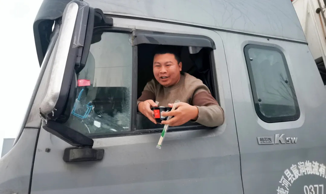 俊杰食品公司的領導看到長龍般的拉貨車隊,立即安排為這些在風雪中堅守崗位的貨車司機們送去一份溫暖的禮物——自己公司生產的清香水餃